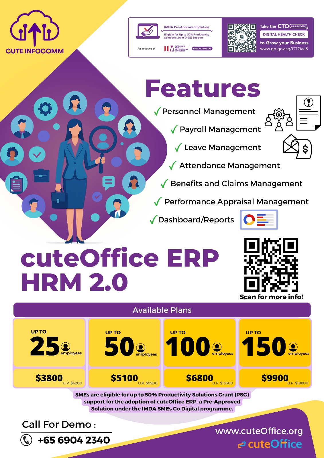 The HRM Produtivity Suite is available as Pre-Approved@SMEGoDigital solution for SME clients with Up to 50% grant.